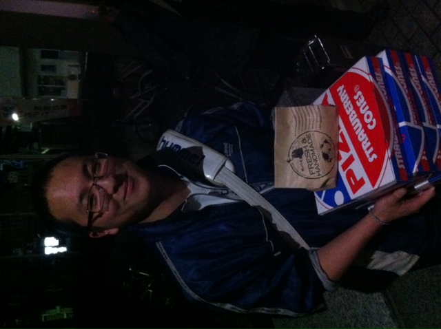 写真はノートンこと能登谷君とバースデーピッツァ。ハタチになったそうです。